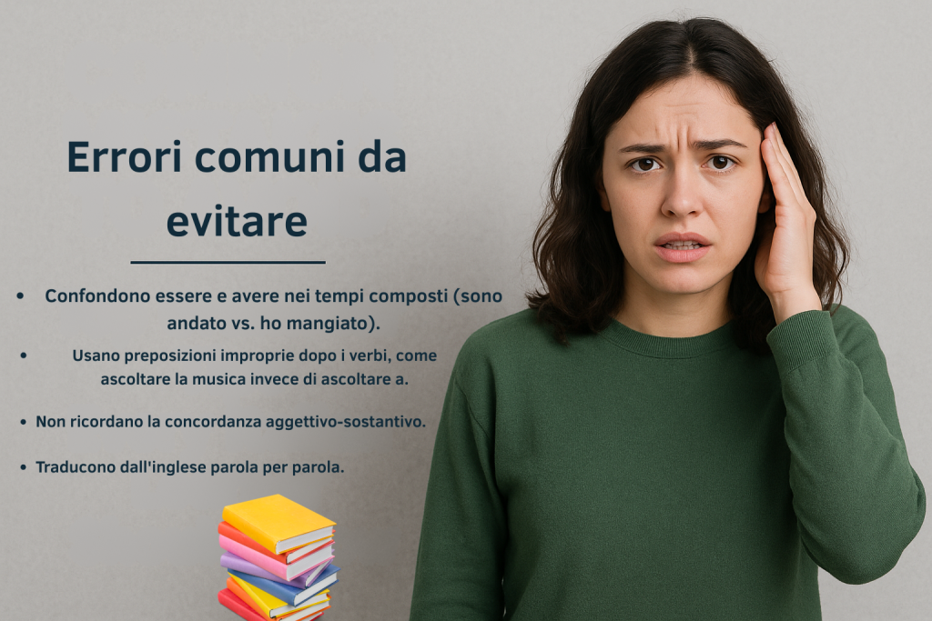 - Confondono essere e avere nei tempi composti (sono andato vs. ho mangiato).
